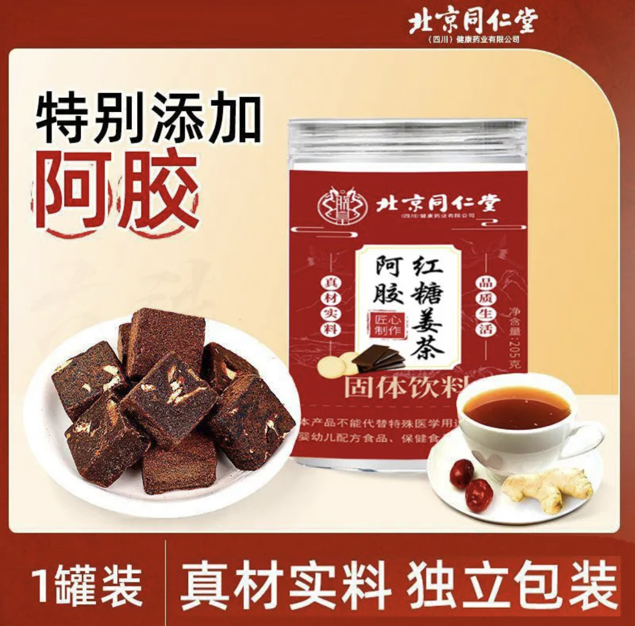 北京同仁堂 阿胶红糖姜茶 常备冲泡红糖暖身暖心 205g/罐
