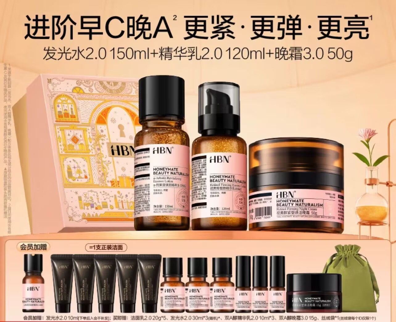 HBN早C晚A水乳面霜套装护肤品进阶淡纹紧致抗皱提亮保湿化妆品