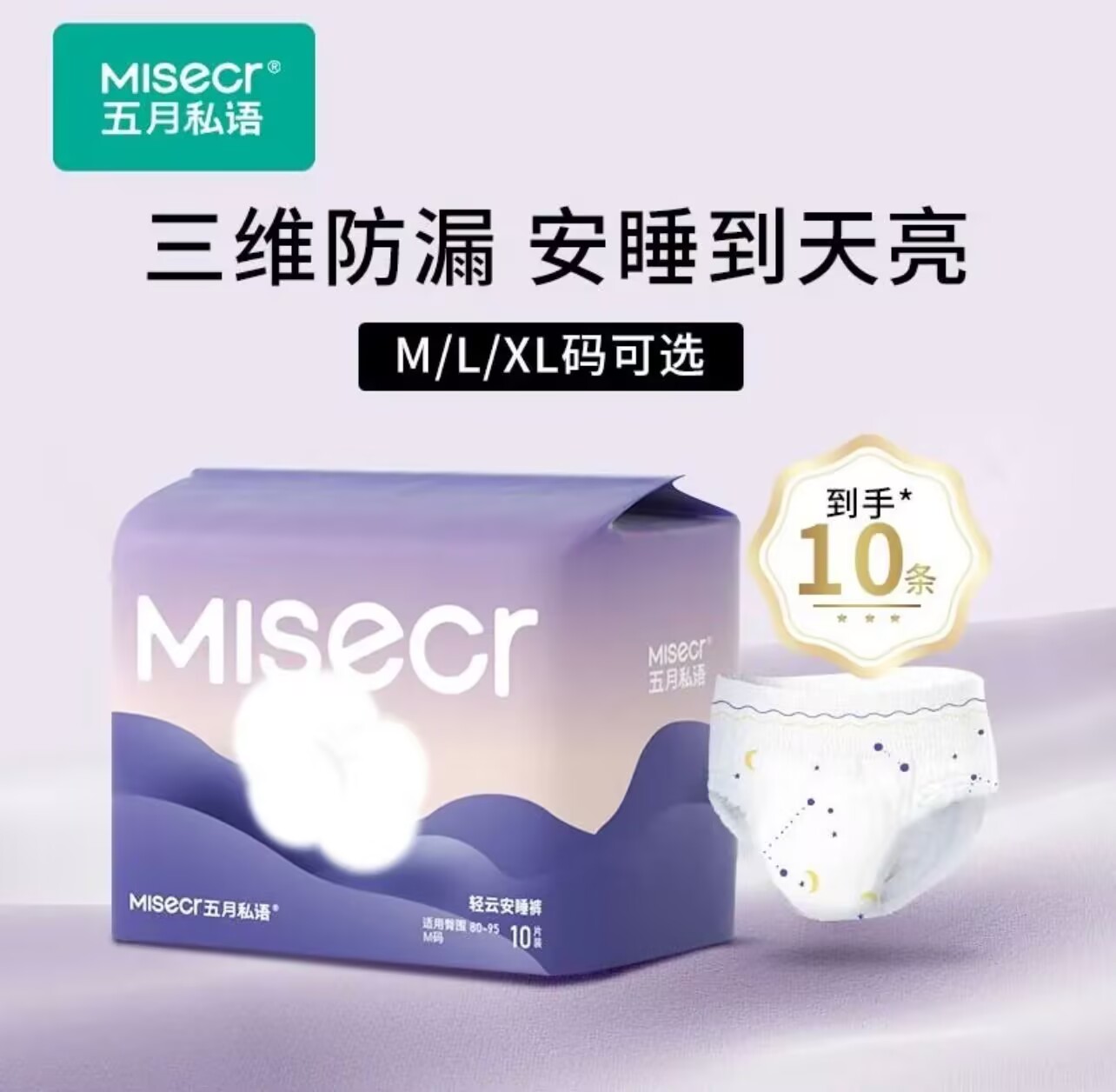 五月私语 安睡裤M-XL码夜用轻云安心裤女性经期防侧漏晚安裤 10条/袋(码数可选)