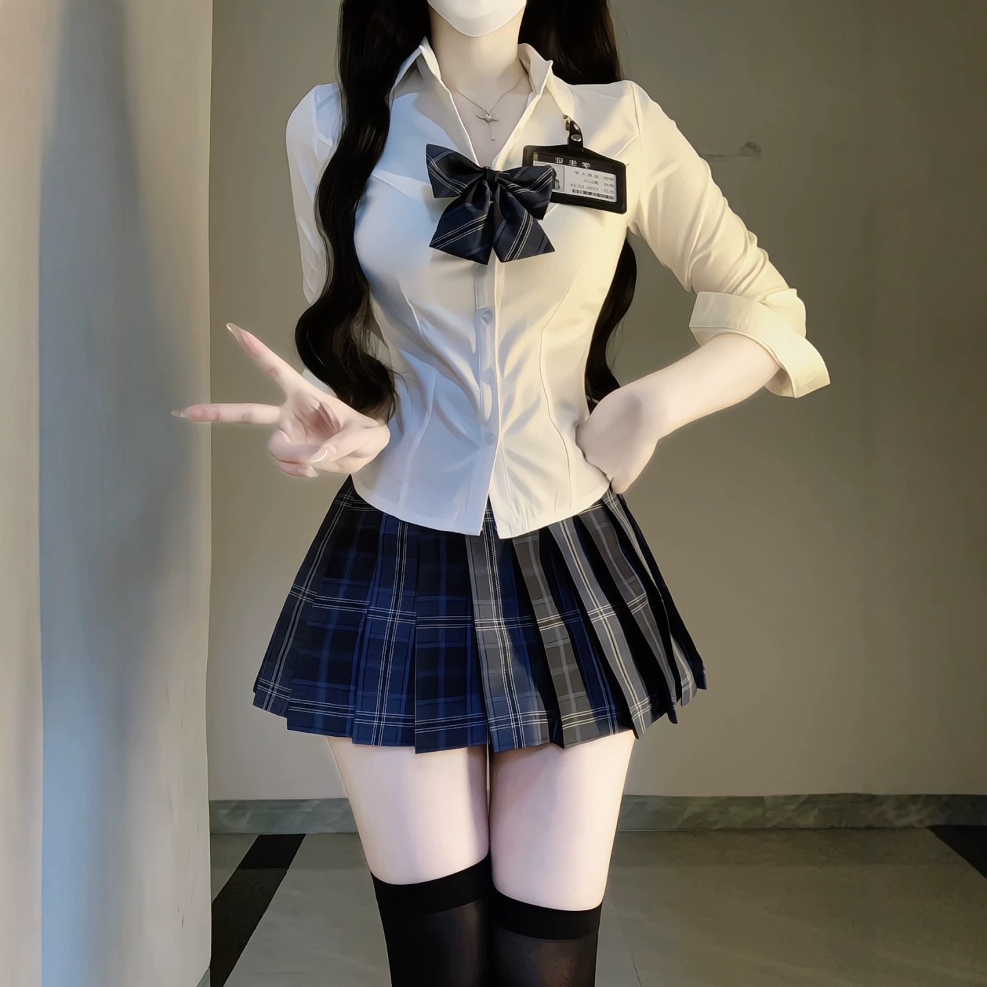 辣妹短裙套装津川正版原创JK制服长袖收腰衬衫半身裙新款百褶裙女